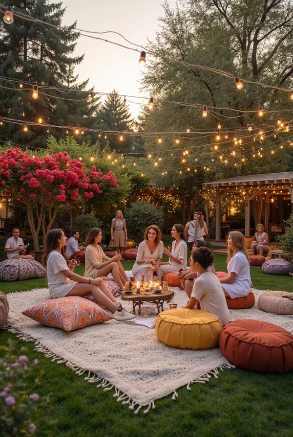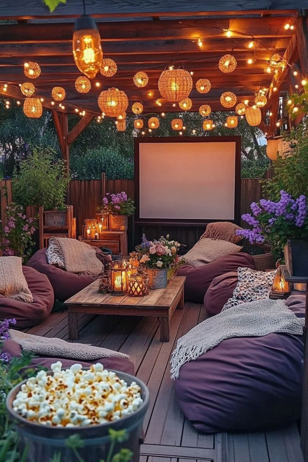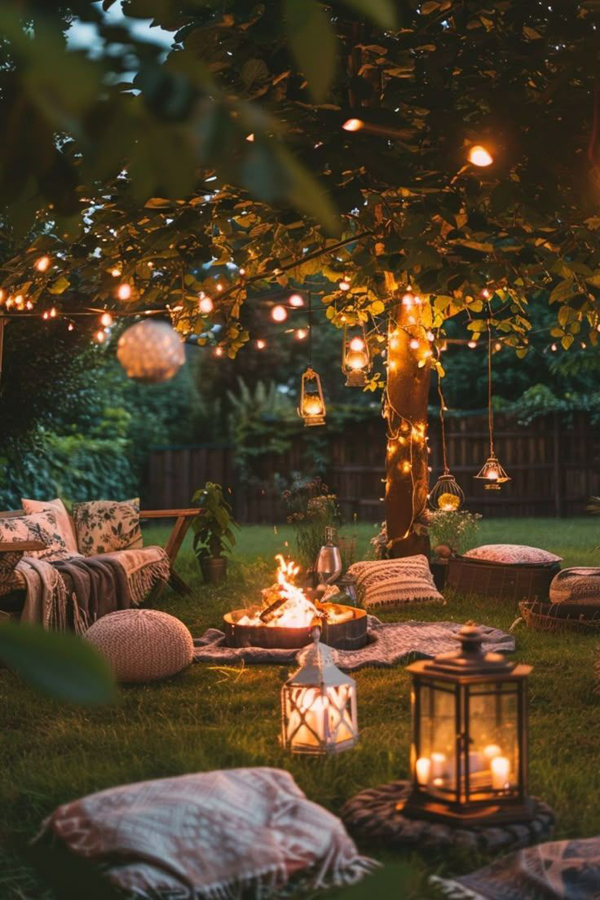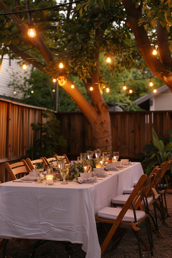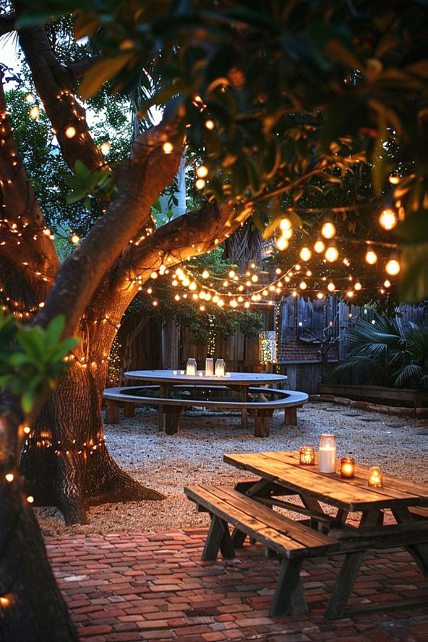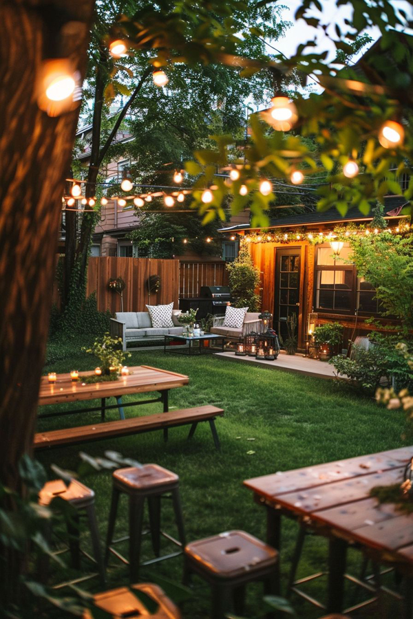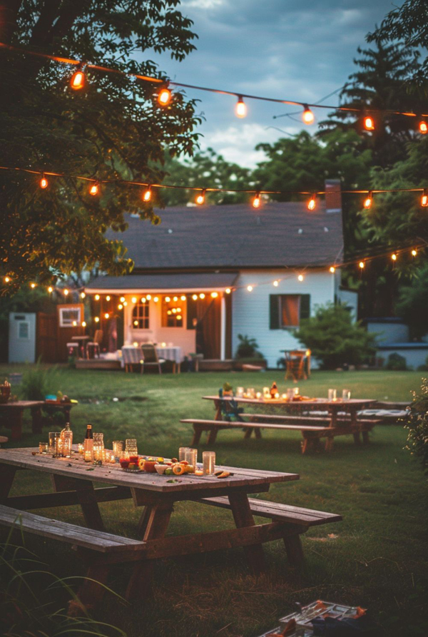 To make your New Year’s party decorations even more vibrant, combine string lights with other decorative elements. Use wooden tables, lounge chairs, or bean bags to create a cozy gathering area. Add candles, lanterns, or small LED lights as additional lighting accents. Decorative plants and fresh flowers can also enhance the outdoor atmosphere. Combining string lights with natural elements will create a warm and classy New Year’s party decoration.