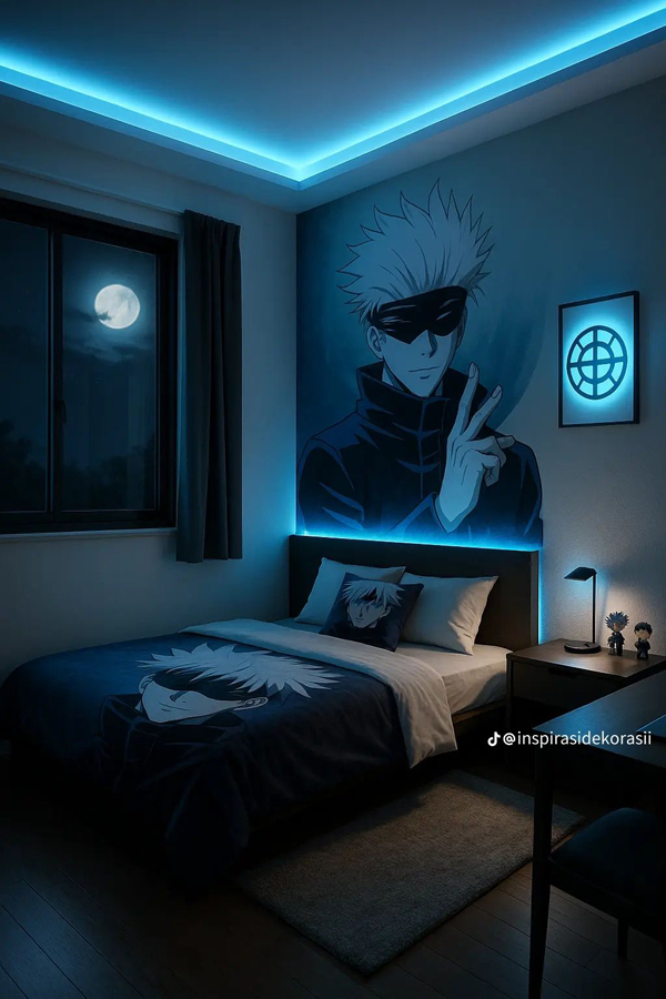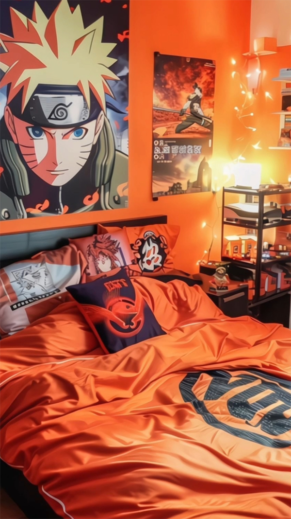 To enhance the atmosphere, use sheets, pillowcases, or blankets with anime motifs. Choose designs that aren’t too busy to ensure a comfortable sleep experience. Alternatively, use plain colors that match the anime theme for a more mature and minimalist look.