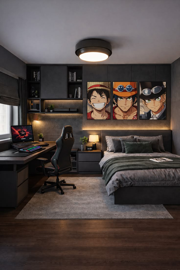 Each anime usually has its own distinctive color scheme. For a calming theme, use pastel colors like white, light blue, or cream. For a more lively atmosphere, you can choose bright colors like red, yellow, or purple. Match the wall color with the furniture to maintain harmony and prevent the room from feeling cramped.