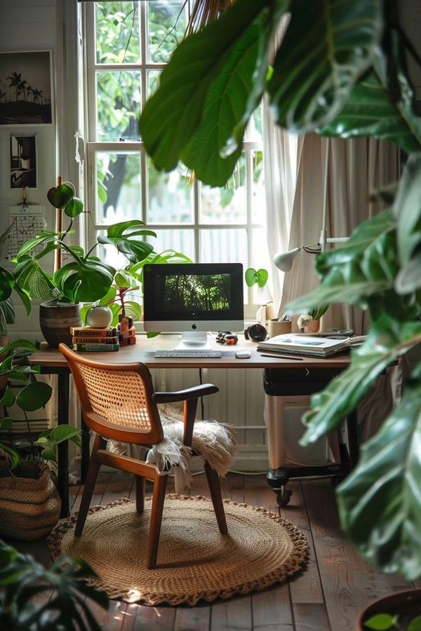 Bringing natural elements indoors has been shown to increase productivity by up to 15%. You don’t need to turn your room into a jungle; just place some easy-care indoor plants like Snake Plant or Peace Lily. Besides filtering the air, the green color of plants provides a refreshing visual break for screen-straining eyes. Use natural materials like a raw wood table or a jute rug to add organic texture to your sanctuary.
